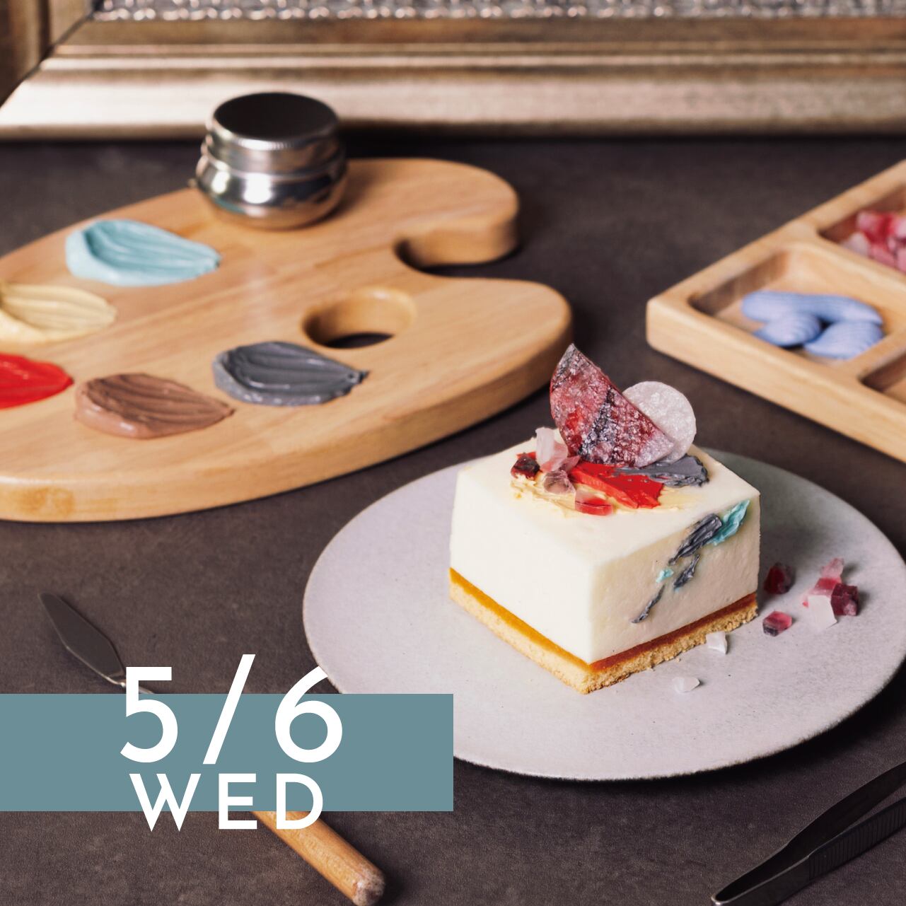 パレットにのったカラフルなバタークリームや、標本箱に入った鮮やかなトッピングパーツを自由に盛り付けて、あなただけの"オリジナル作品"を仕上げて頂く体験型のケーキです。